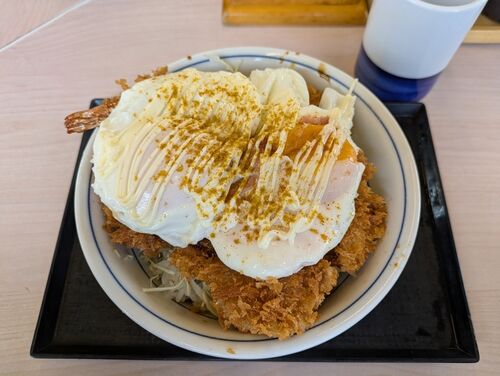 現在絶賛ハムエッグ祭り開催中のかつや。 murayoshinouen.com 先週に引き続きまた新作が出ていたので食べてきた。 murayoshinouen.com 今回は真ん中 今回のハムエッグはチキンカツに海老フライにホタテフライである。 うん。意味が分からないよ。 きゅうべえ…