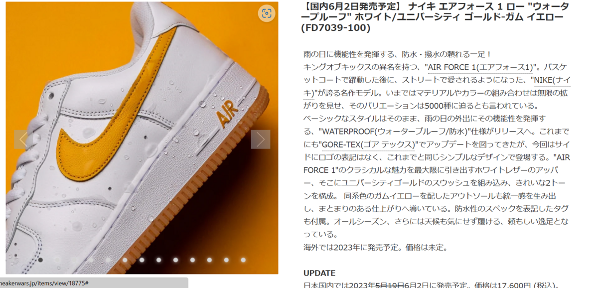 そのときのブックマークコメントにて、普段からよく見させてもらっている、服地パイセンさんから、ゴアテックスの『エアフォース1』を雨の日用にしているとの情報を教えていただいた。