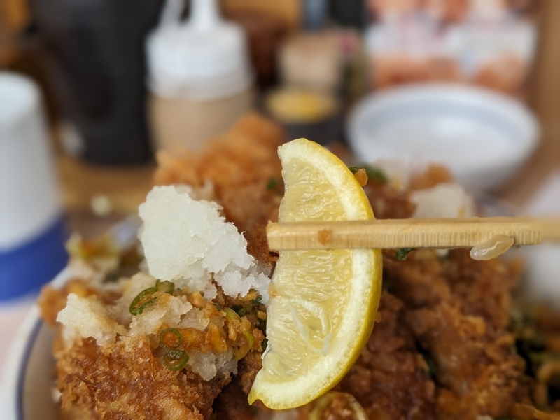 生姜が効いたさっぱりしたタレと大根おろしがカツに抜群に合う。